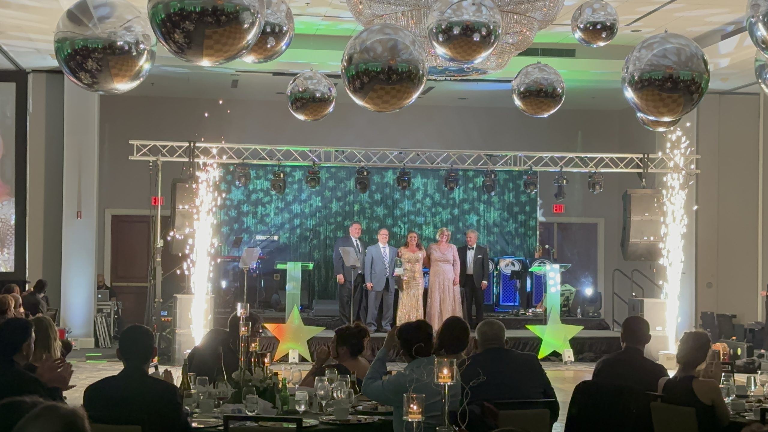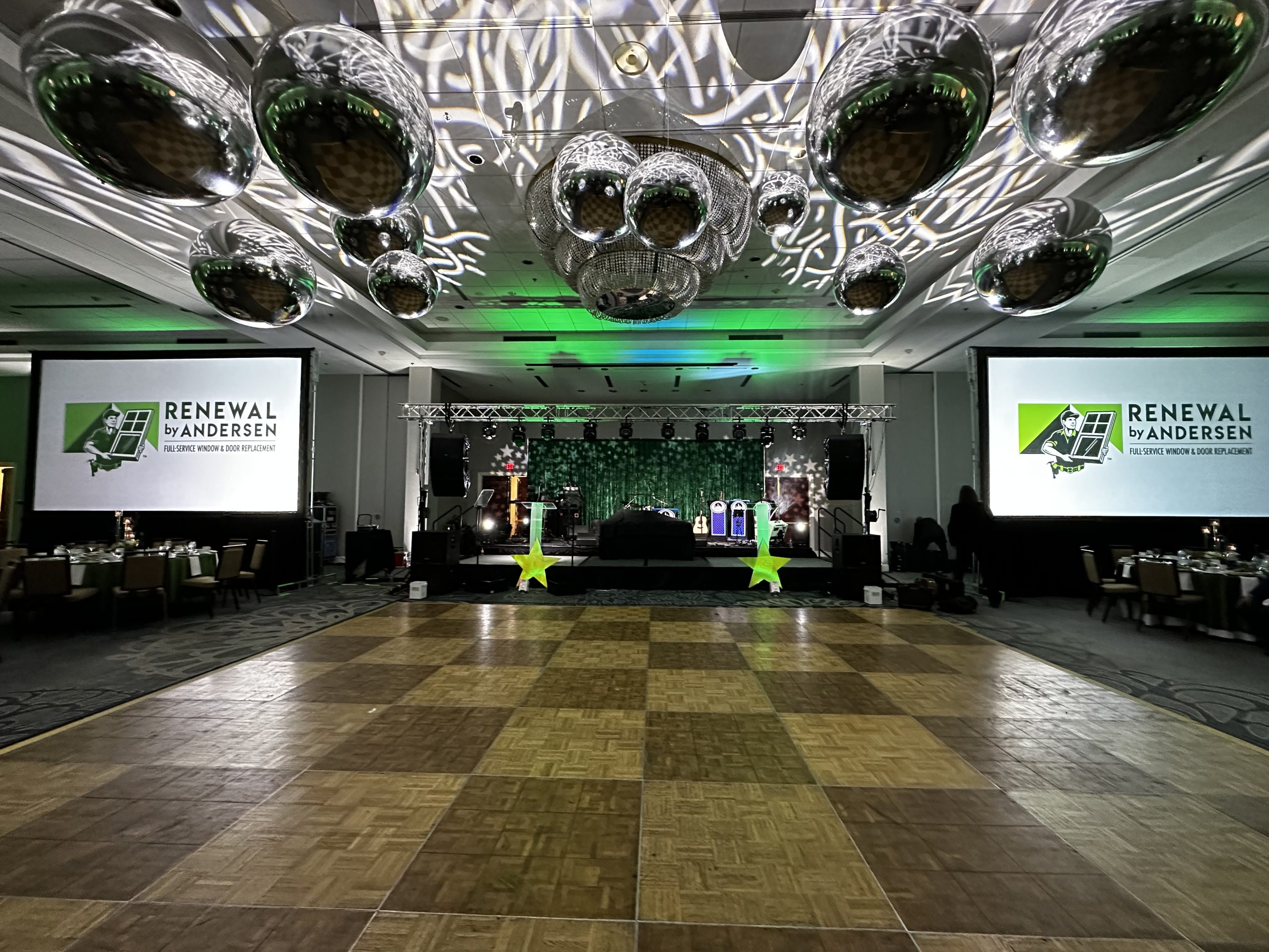 We had the honor of providing Renewal by Andersen LLC with Corporate AV for their Star Gala at the Hilton Harrisburg. We provided audio reinforcement, projectors, cold spark machines for a nice pyro effect, staging, trussing/rigging, live broadcasting, uplighting, and gobo monogram lighting, and dance lighting. Party Belles did a fabulous job planning, designing, and implementing this event and Central City Orchestra kept everyone on their feet all night long! Obsidian Studios provided photography and cinematography throughout the event and Kater To You Rentals LLC provided a 360 Spin Booth.